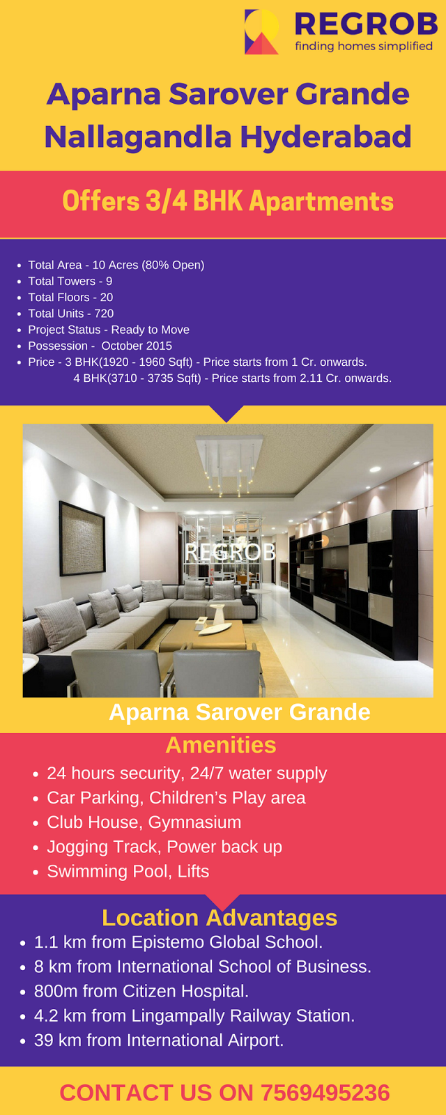 Aparna Sarovar Grande Ready to Move Project - Offers 3/4 BHK Apartments at Nallagandla Hyderabad